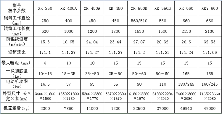 开放式炼胶机XK-250 XK-400 XK-450 XK-560A炼胶机MLL主要用于橡胶的热炼、压片、塑炼及混炼。结构方式为开式齿轮转动。
